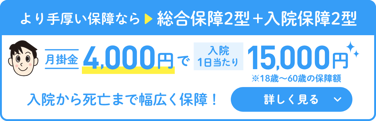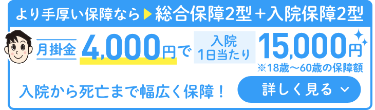 保障額が「熟年2型」の2倍の「熟年4型」(月掛金4,000円)もあります。